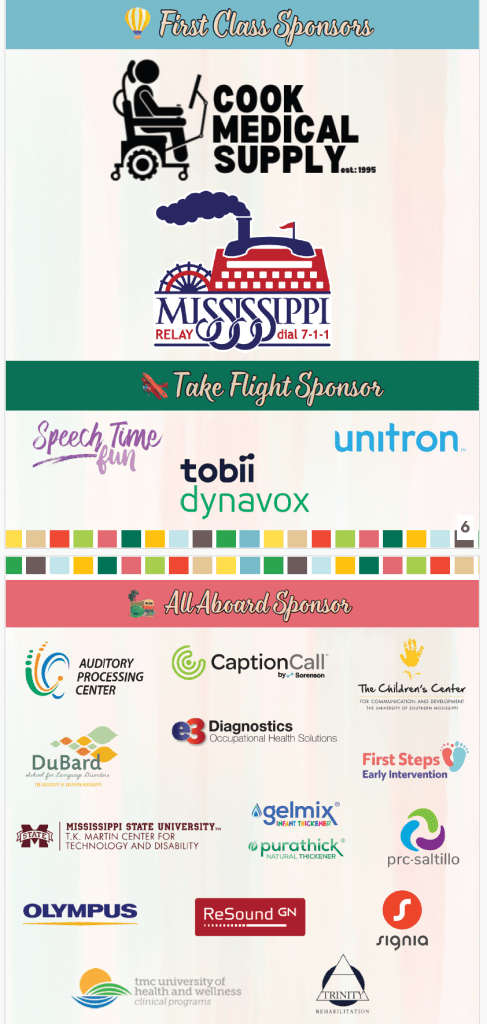 A special thank you to the following organizations who are sponsors of the Mississippi Speech-Language-Hearing Association for the 2024-2025 term. We appreciate the partnership of these valued members.